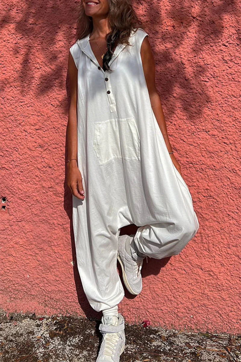 Casual Sportswear Solid Pockets Hooded Collar Straight Jumpsuits (3 Colores)