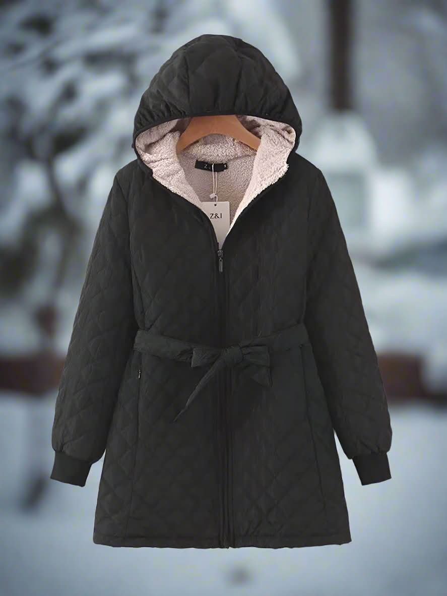 Acogedora chaqueta acolchada con capucha y cinturón para mujer