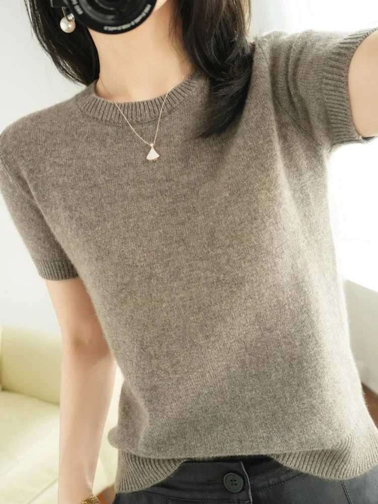 Susannah- Jersey de punto de mujer de manga corta y escote redondo