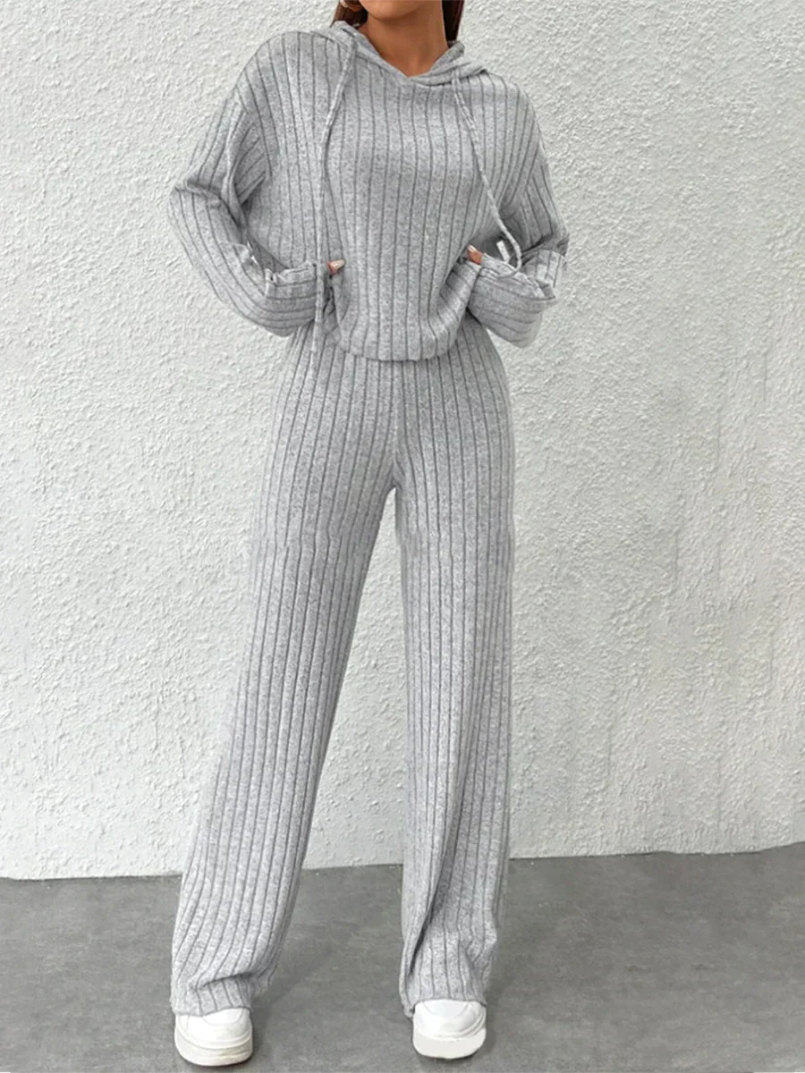 Lauren | Sudadera de punto con capucha y pantalones anchos Alora