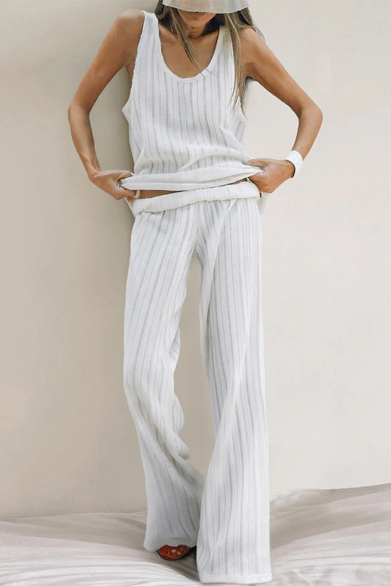 Gertrudis® | Casual, mouwloos tweedelig pak met kuilen en een ronde halslijn