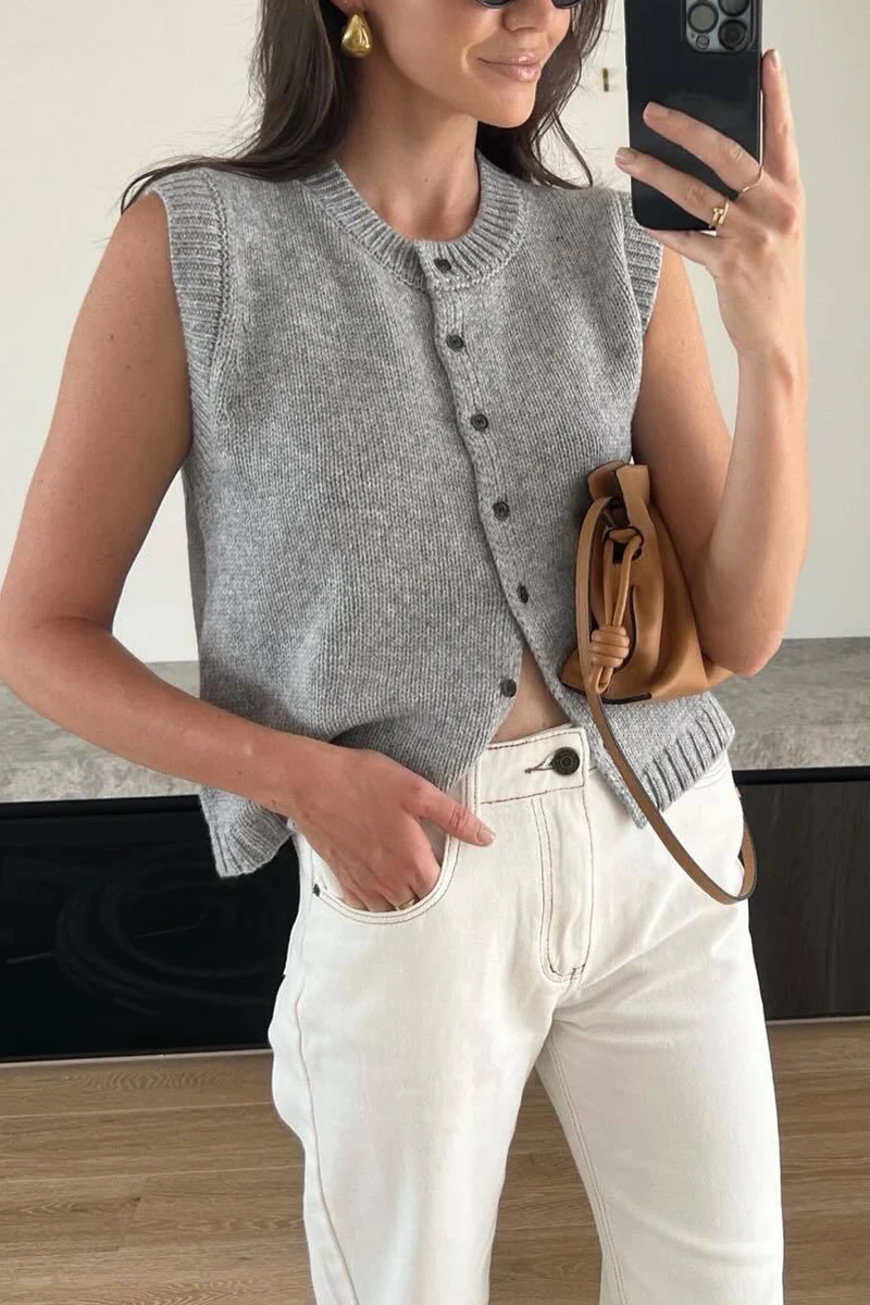Zelda® | Casual effen kleur gesp O-hals straattops (4 kleuren)