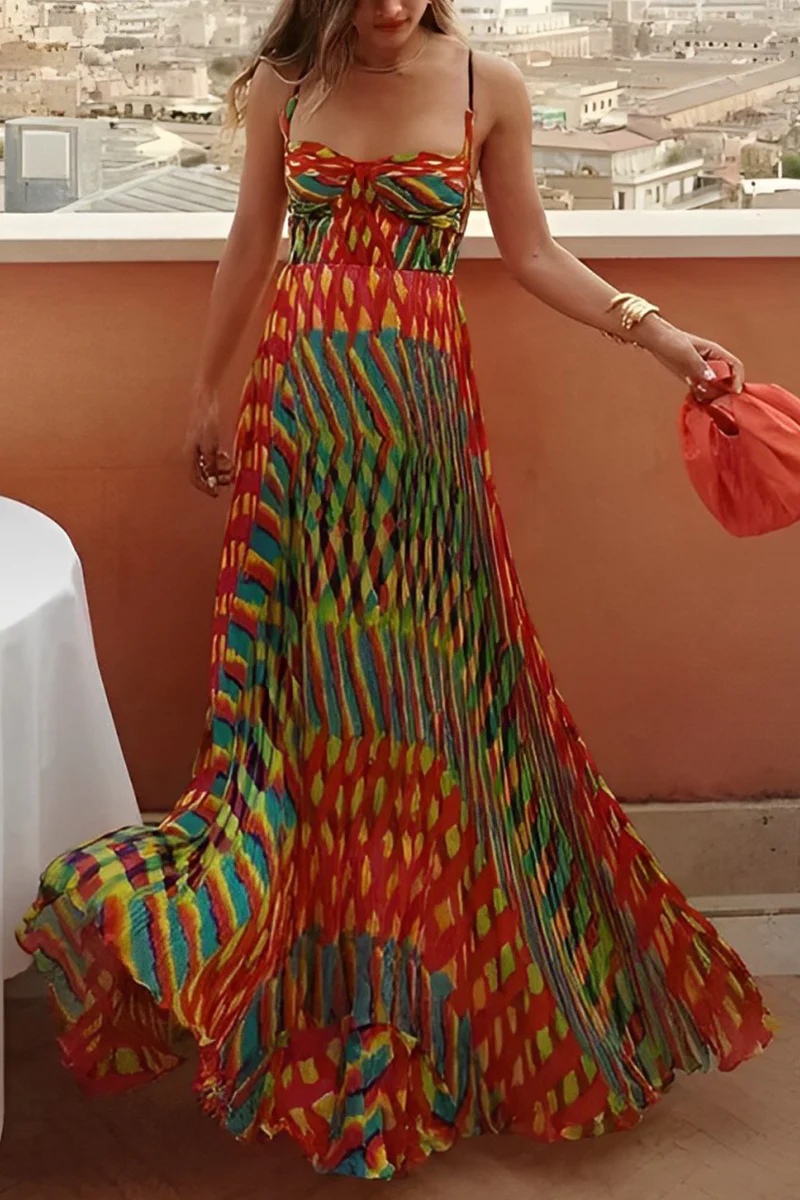 Soleil® | Elegante sling-jurken met gestreept patchwork-contrast en V-hals