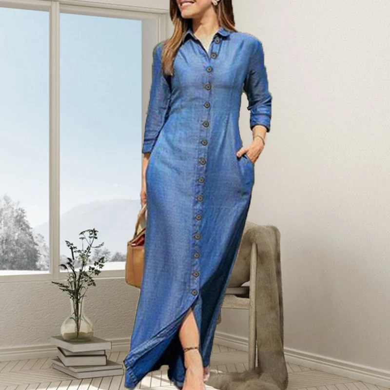 Vestido vaquero de mujer con cuello camisero