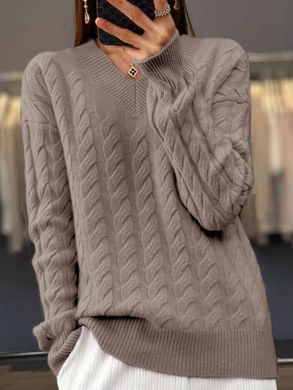 Suéter Zaila | Retro Twisted Jacquard Suéter con cuello en V