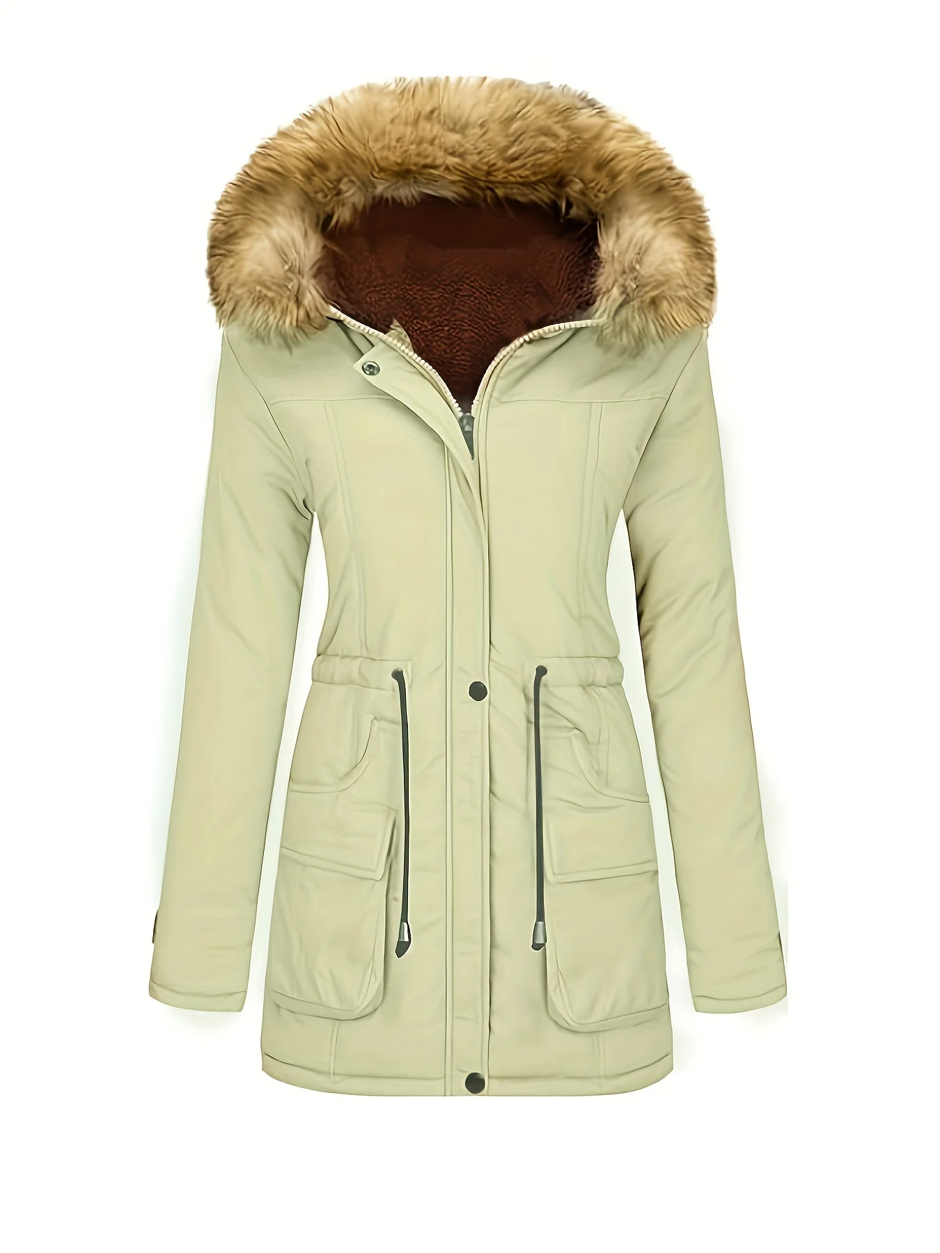 Chaqueta de invierno de forro polar informal con capucha de piel vegana para mujer | Perfecta para actividades al aire libre