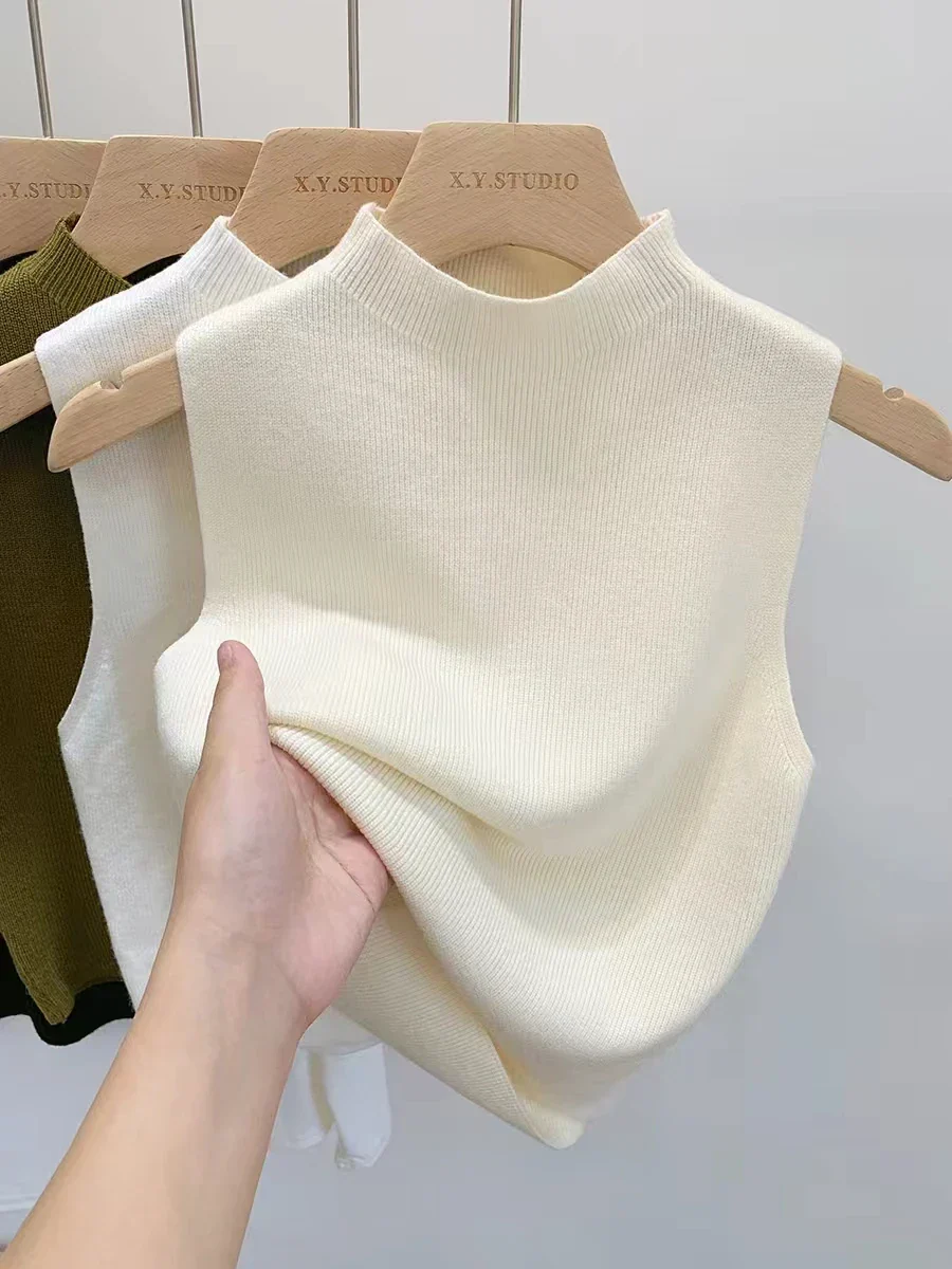 Calandra- Jersey de punto sin mangas con cuello alto para mujer