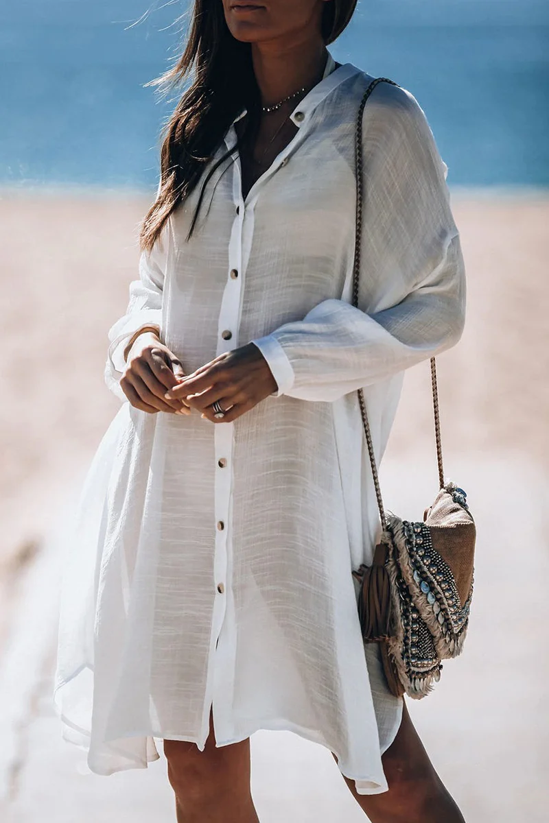 / Casual-Vacaciones-color-sólido-hebilla-mar-a través-pantalones de baño Up (5 colores)