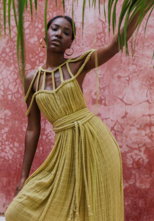 Avery – Sofisticado y moderno maxi vestido de lino con trenzas drapeadas