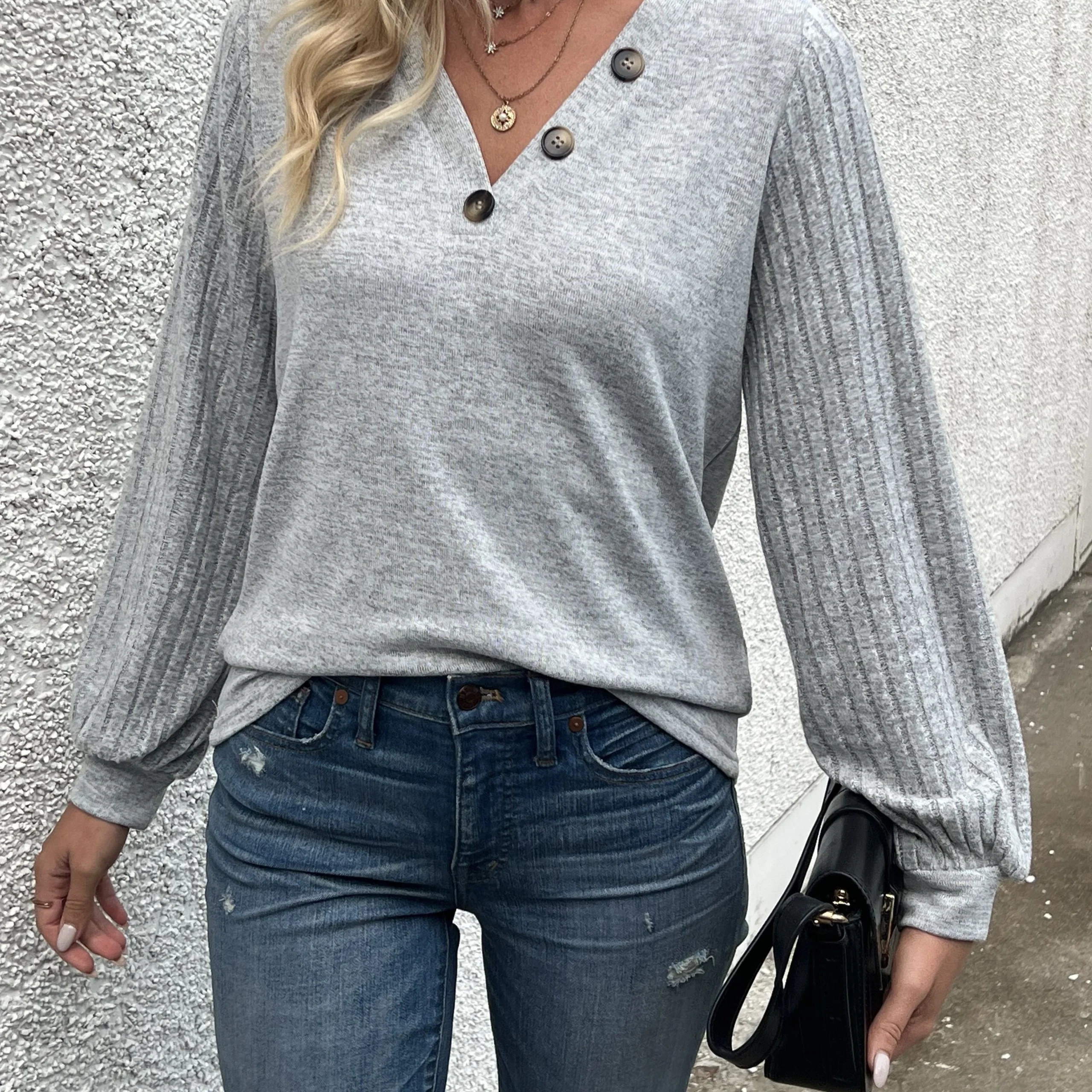 Camiseta de algodón y poliéster – Cuello de pico y cierre con botones