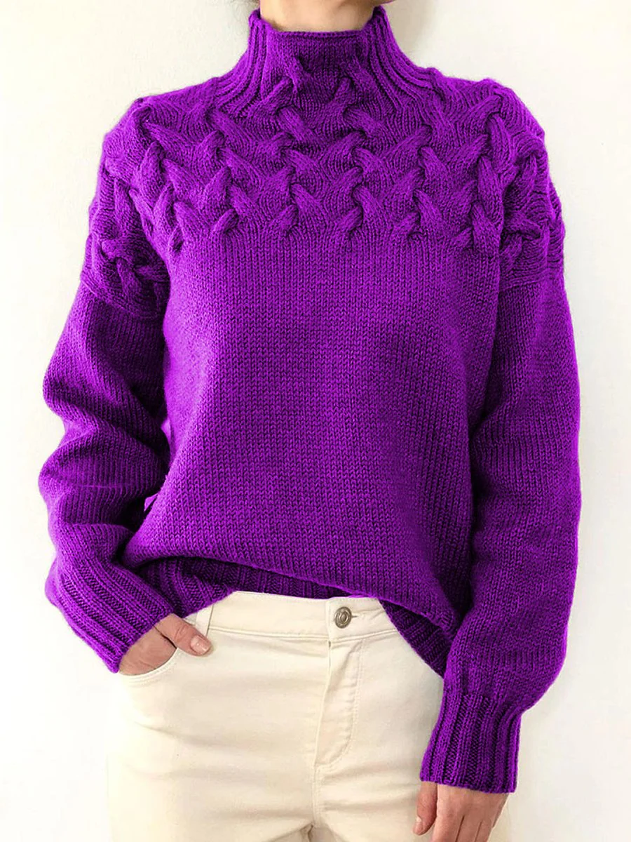 Suéter Zareen | Suéter de cuello alto de punto de cable casual