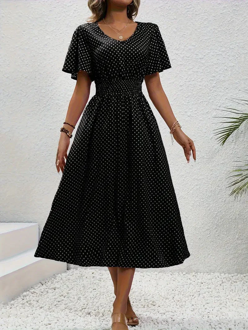 Vestido con estampado all-over y cintura redondeada, vestido casual con manga corta