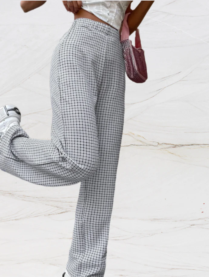 Yanis – Otoño Pantalones de cuadros de talle alto para mujer